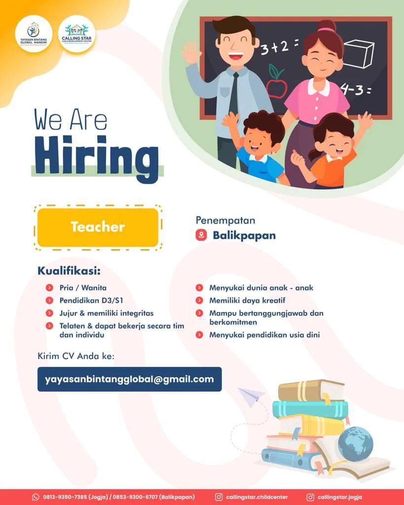 Silahkan kirimkan berkas CV dan lamaran kerja kalian ke alamat email : callingstarcdc@gmail.com